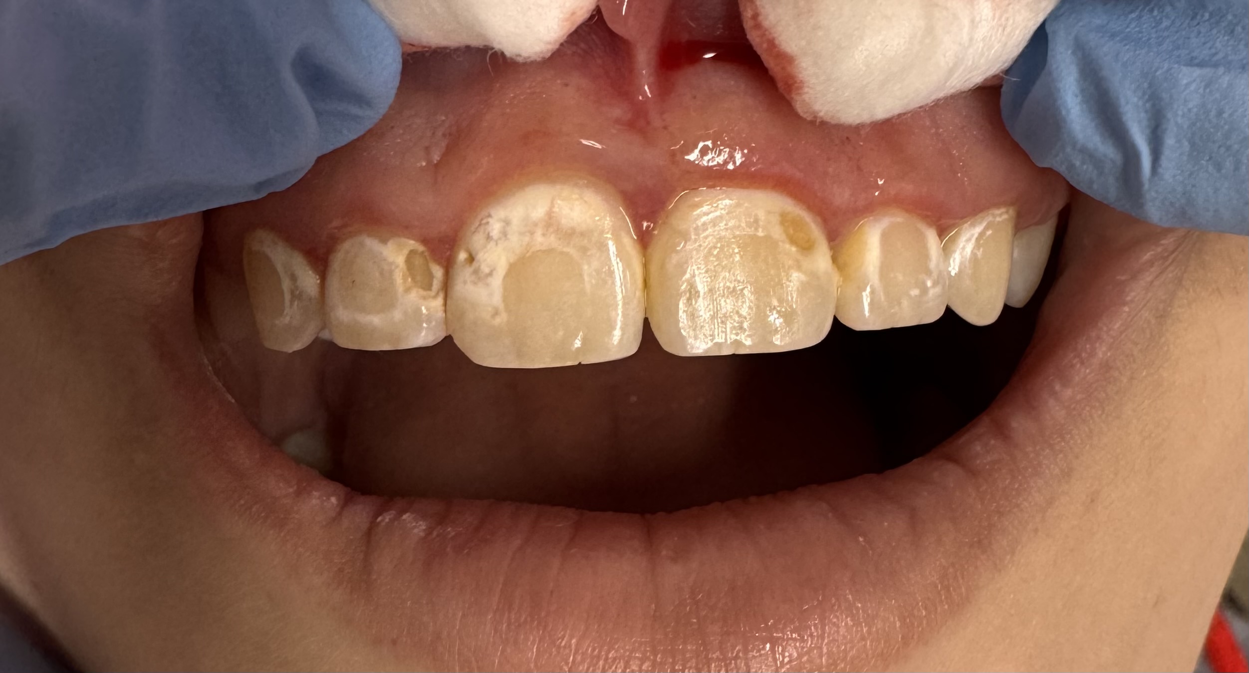 A teenage patient came to see Dr. Pashmini soon after she had her braces removed, and cavities were present on all her front teeth, where the brackets used to be.